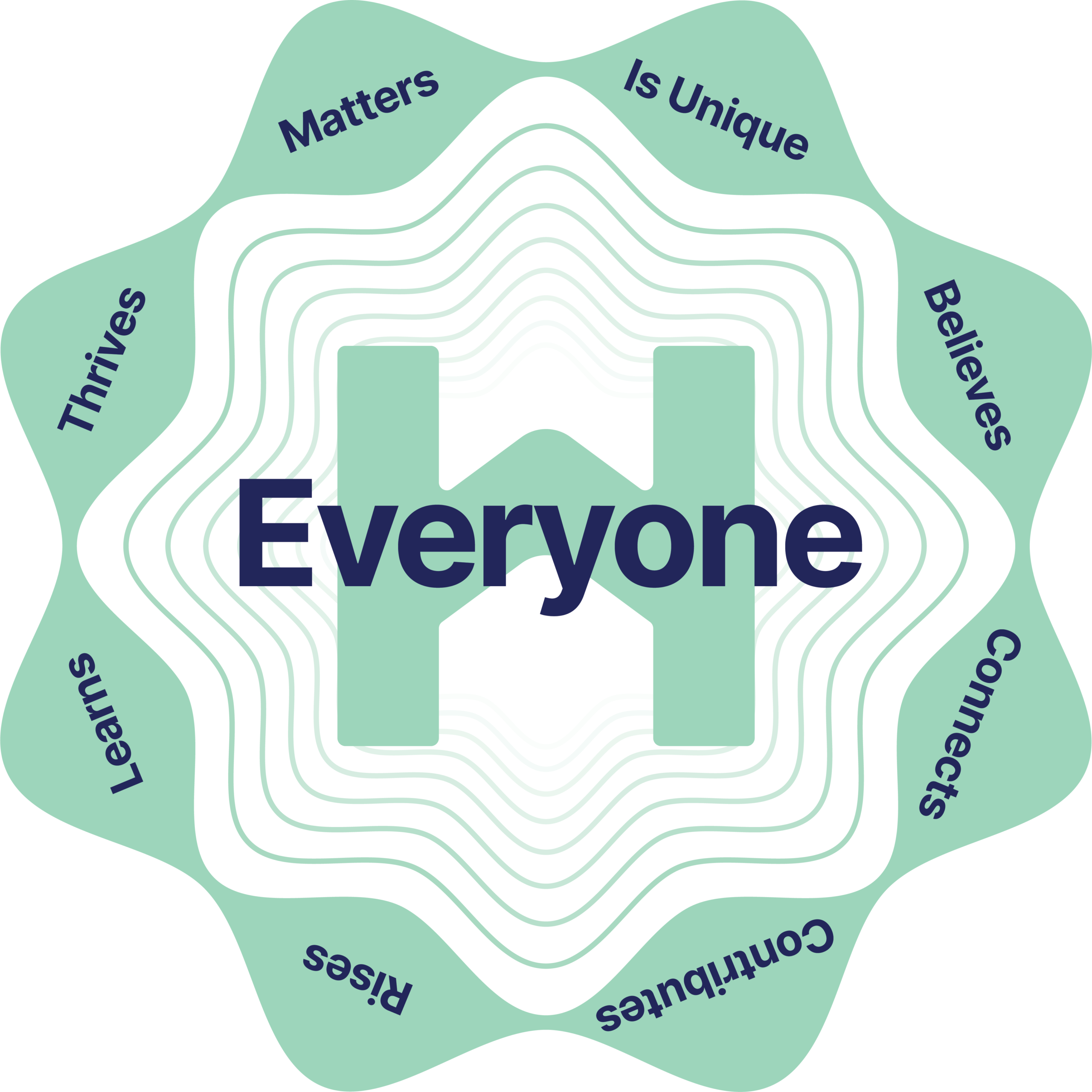 Everyone… Is Unique, Believes, Connects, Contributes, Rises, Learns, Thrives and Matters.